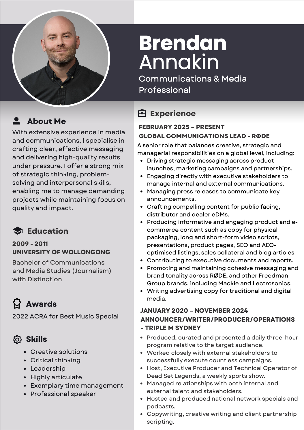 With extensive experience in media and communications, I specialise in crafting clear, effective messaging and delivering high-quality results under pressure. I bring a strong mix of strategic thinking, problem-solving, and interpersonal skills, enabling me to manage demanding projects while maintaining focus on quality and impact.